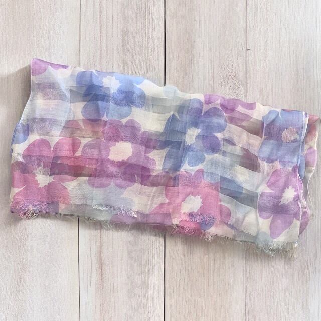 カラフルな花柄デザインがきれいな、軽いコットン/シルク素材のストールです☆