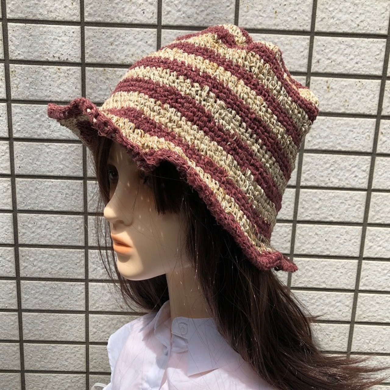夏らしいマリンボーダー柄がかわいい、麻素材使用のワイヤー入りハット☆