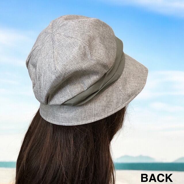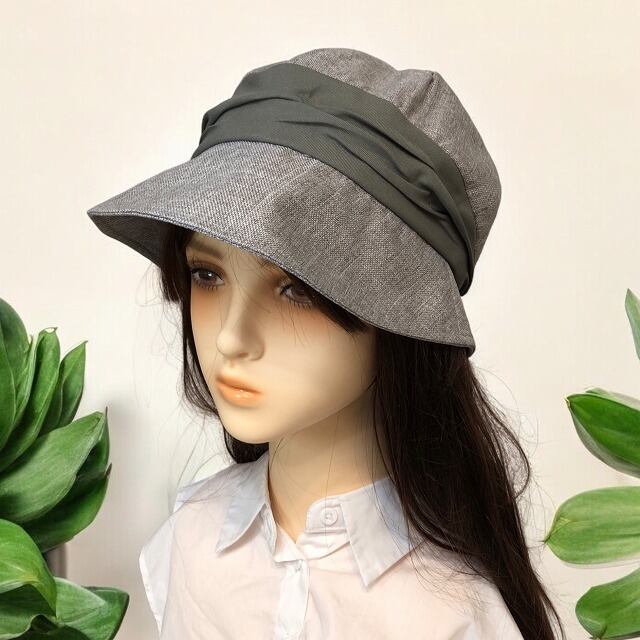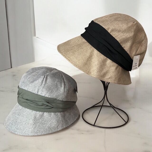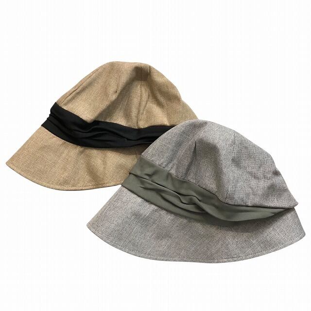 涼し気なリネン風のポリ素材使用の、くしゅっとドレープ入りリボンとバックにタック入りの深型ハット・クロッシェ☆