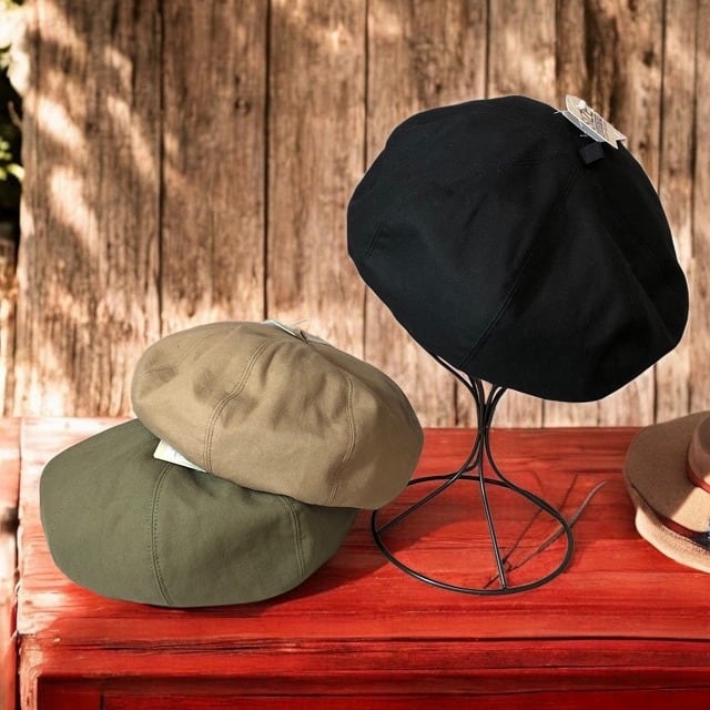 軽くてハリのあるコットンツイル生地を使用した、立体感のあるシルエットの8パネルベレー帽!