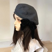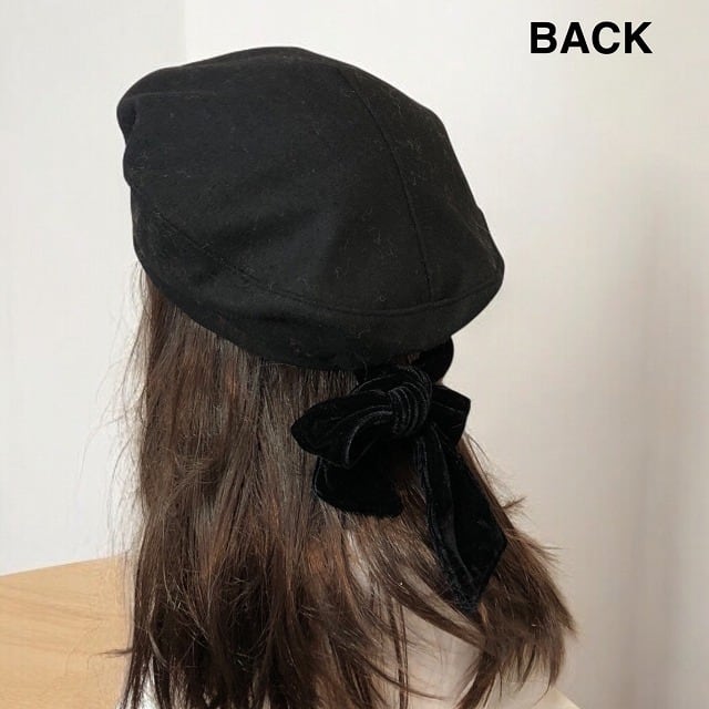 存在感のある垂れ下がるベロアリボンがポイントの、クラシカルレディな雰囲気のメルトン素材のベレー帽!
