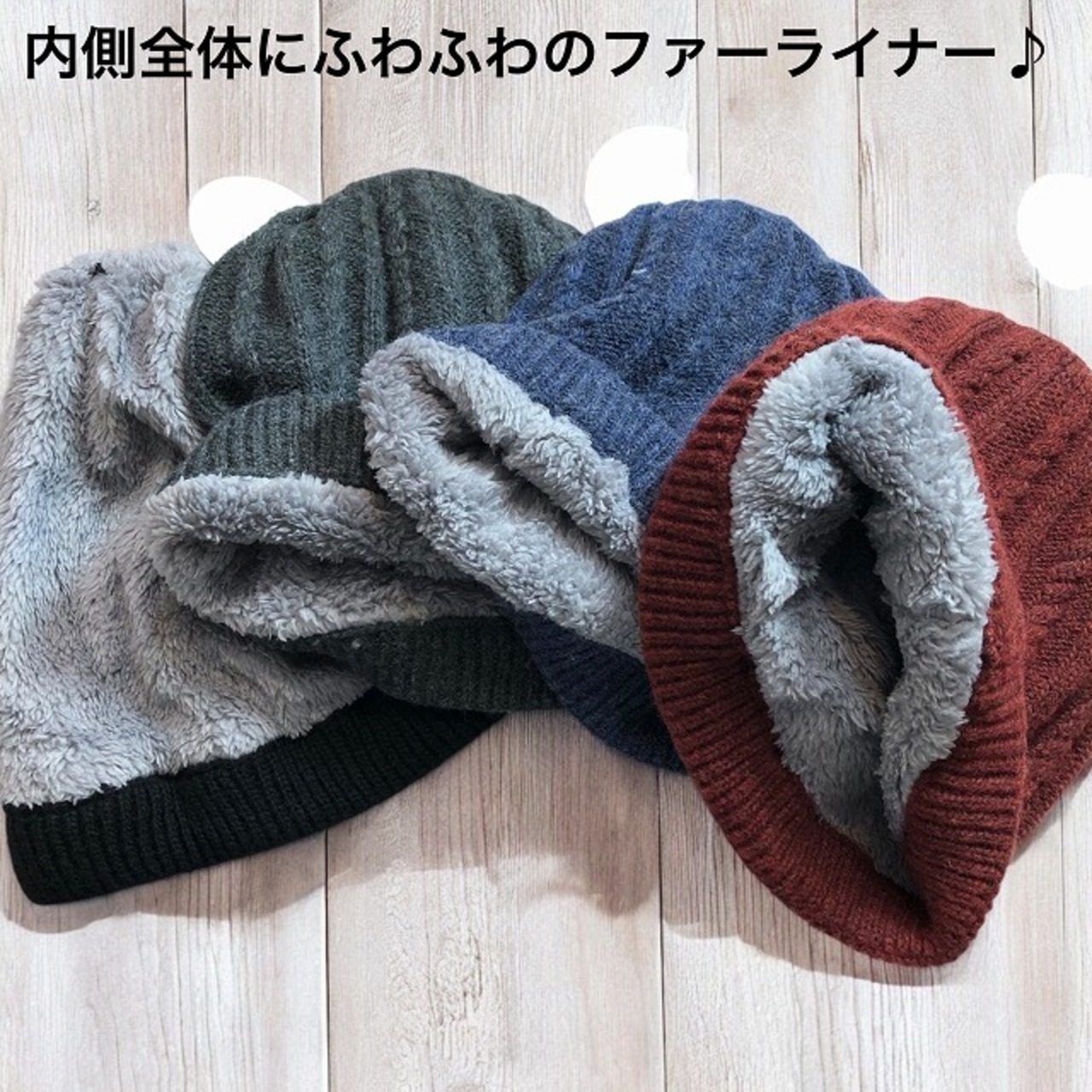 ふわふわファーの裏地付きであったか♪リブ編みのシングルタイプのニット帽!!
