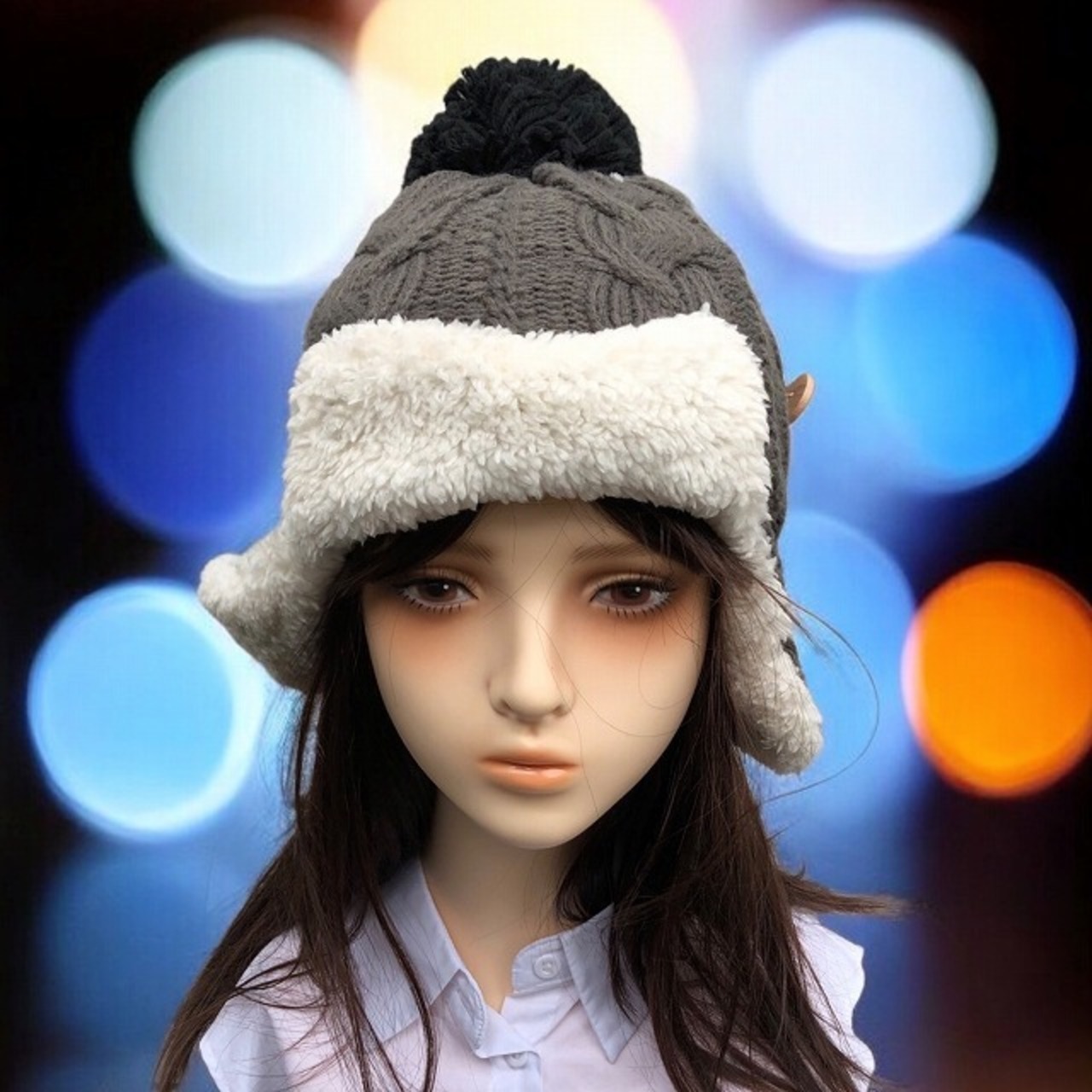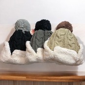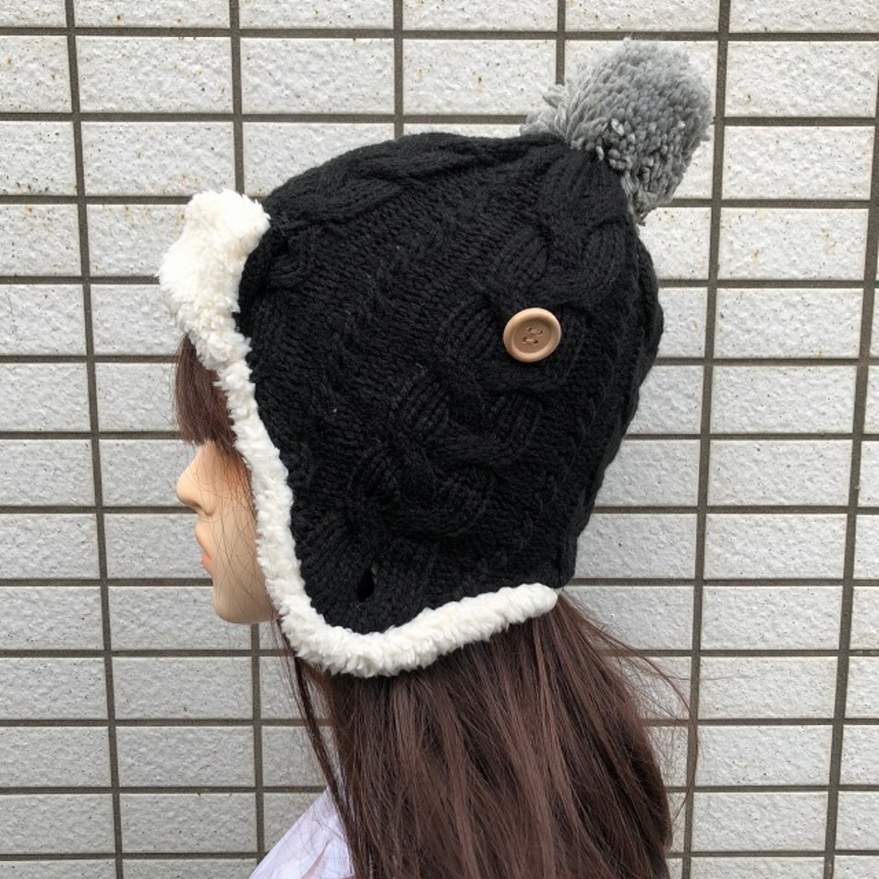 今季も注目のフライトキャップ風のデザインがおしゃれ♪もこもこボアの裏地付きのポンポンニット帽!!