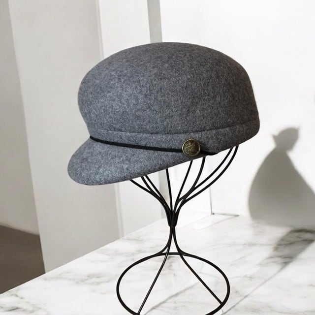 クールな印象のジョッキータイプのキャスケット。冬のコーディネートを引き締めます。