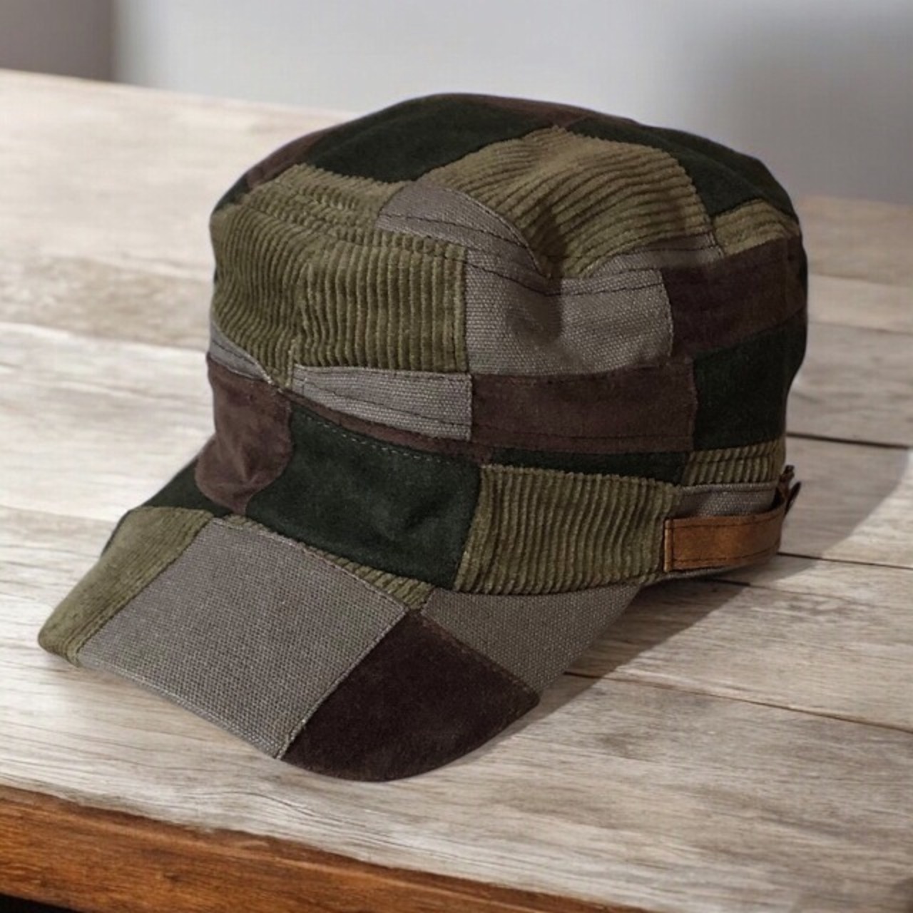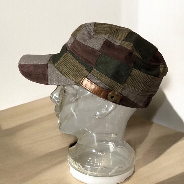4種の秋冬素材をブロック状に組み合わせたパッチワークのデザインがおしゃれなワークキャップ!