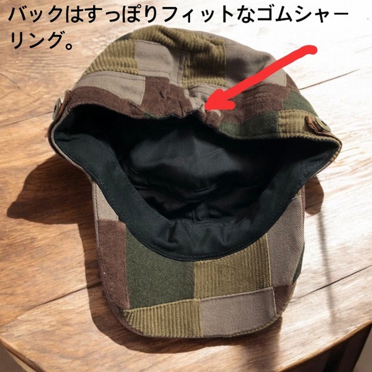 バックはゴムシャーリング。すっぽりフィットで被り心地いいです♪