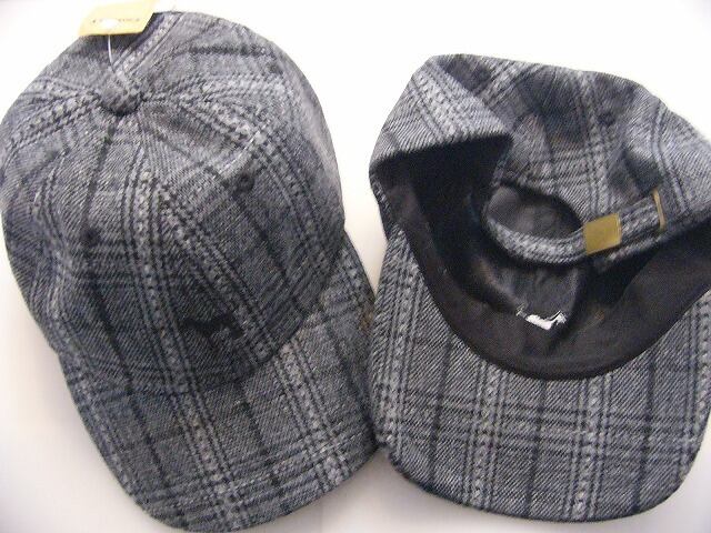 グレンチェック柄に犬の刺繍のワンポイントのデザインのローキャップ!