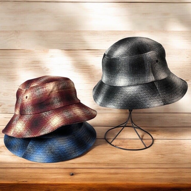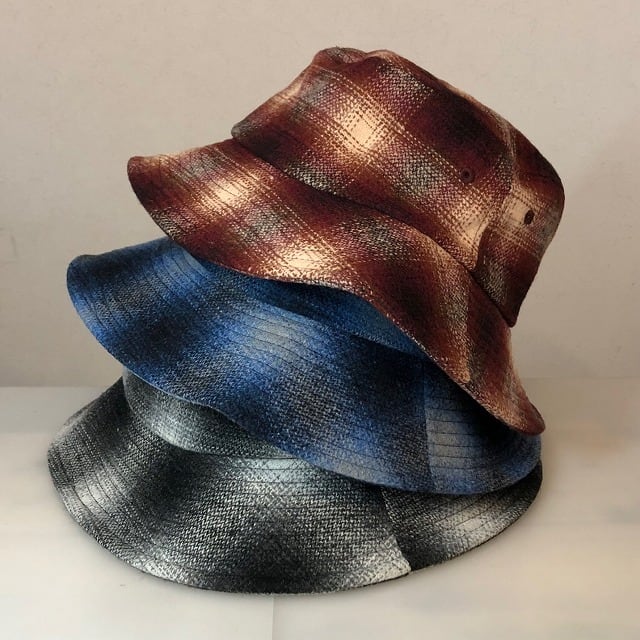 陰影のあるチェック柄、オンブレチェック柄がかっこいいバケットハット。