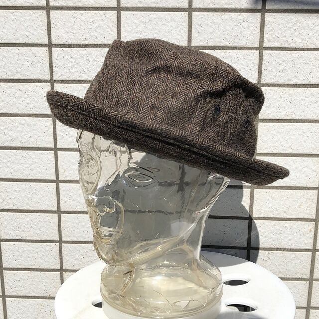 ウールのヘリンボーン素材が渋いポークパイハット。