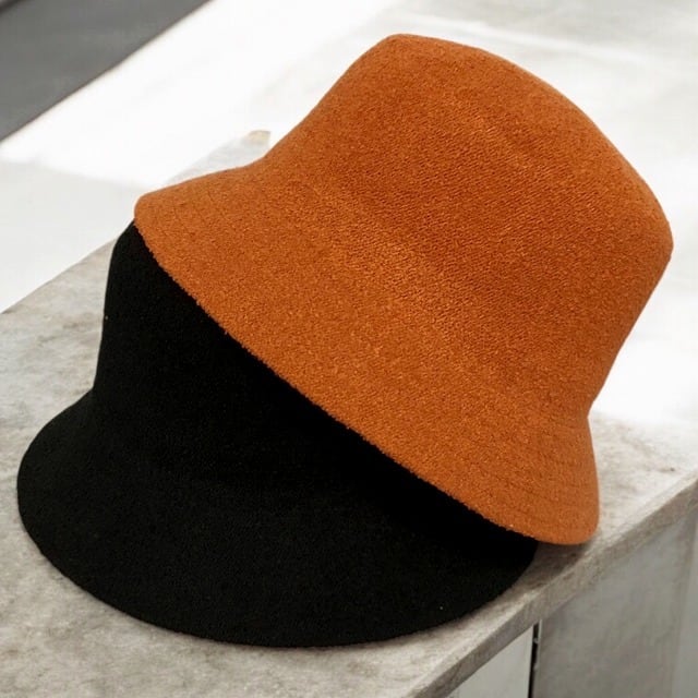 軽くて通気性のいいサーモニット使用のシンプルなデザインのバケットハットの秋冬バージョン。