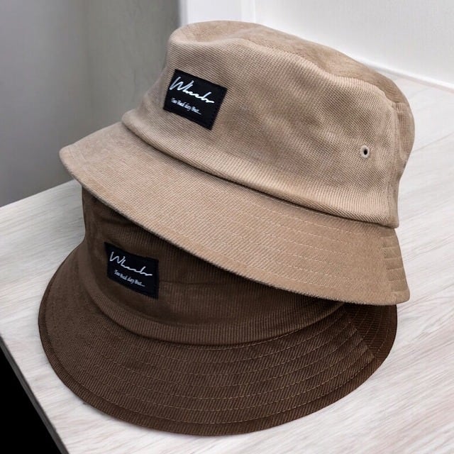 秋色がいい感じ♪軽めで柔らかい、ソフトな質感のコーデュロイ素材のワッペン付きバケットハット!
