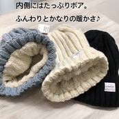 真冬もあったか♪裏ボア仕様の折り返しのリブ編みニット帽!!